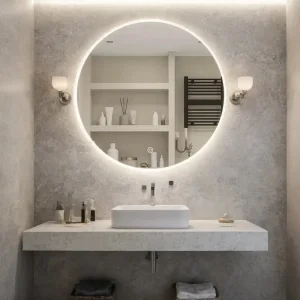 Vanities, basins, and smart LED mirrors that bring practicality and style to contemporary bathroom designs.